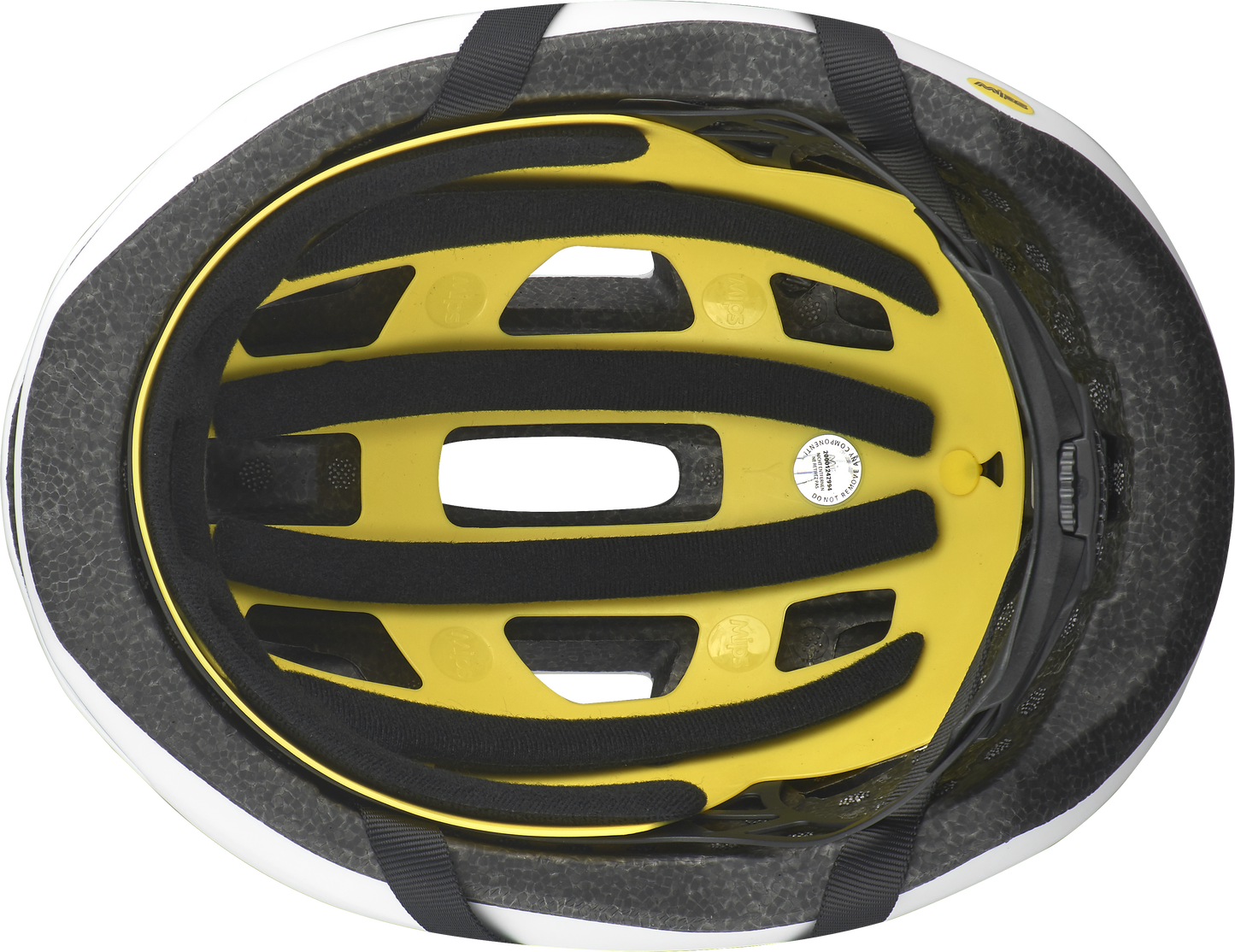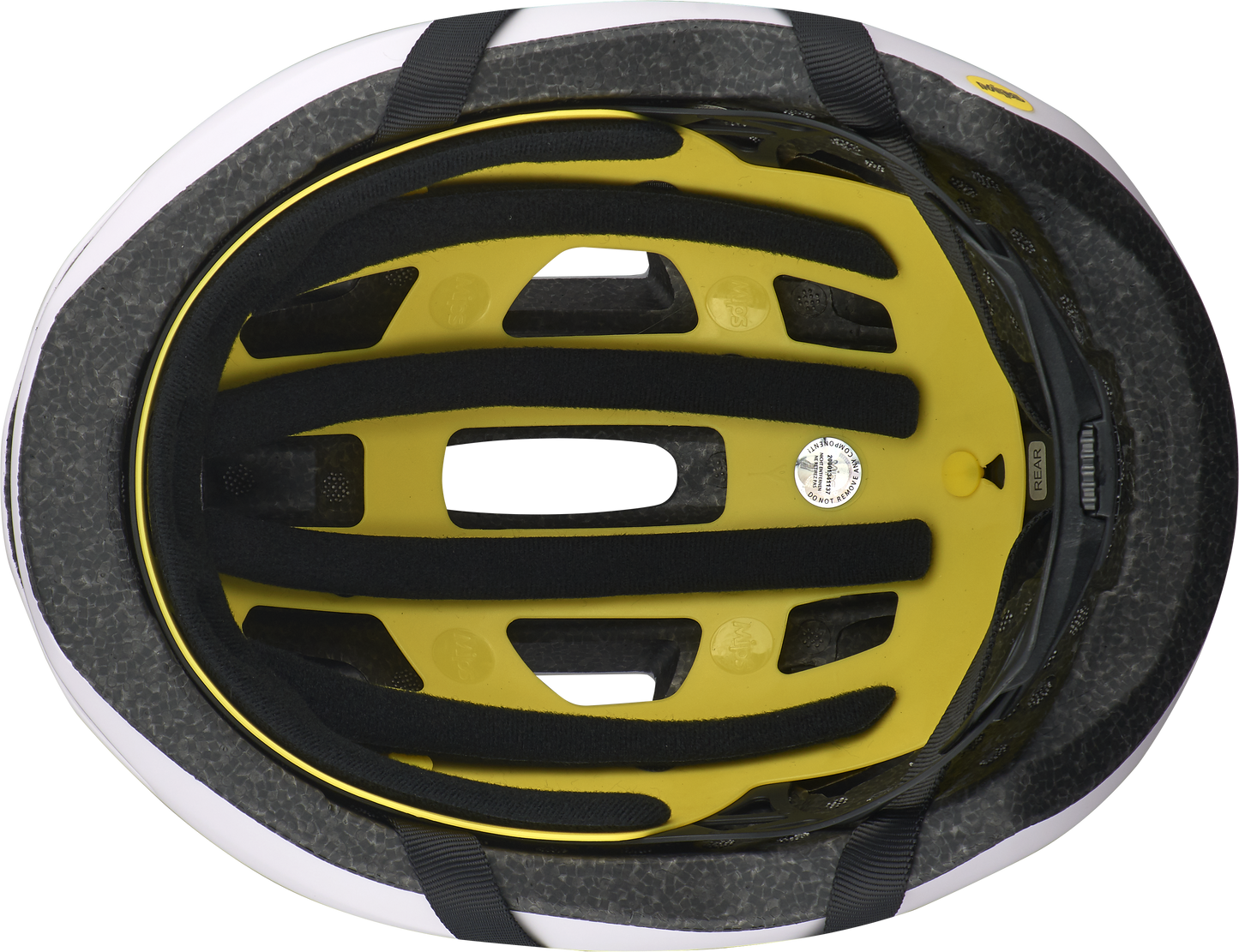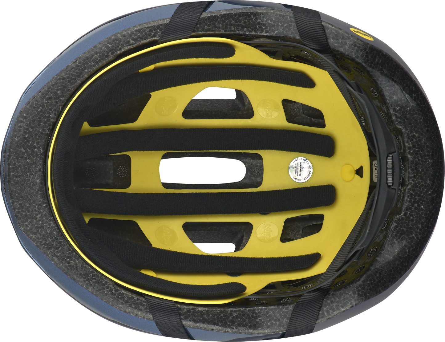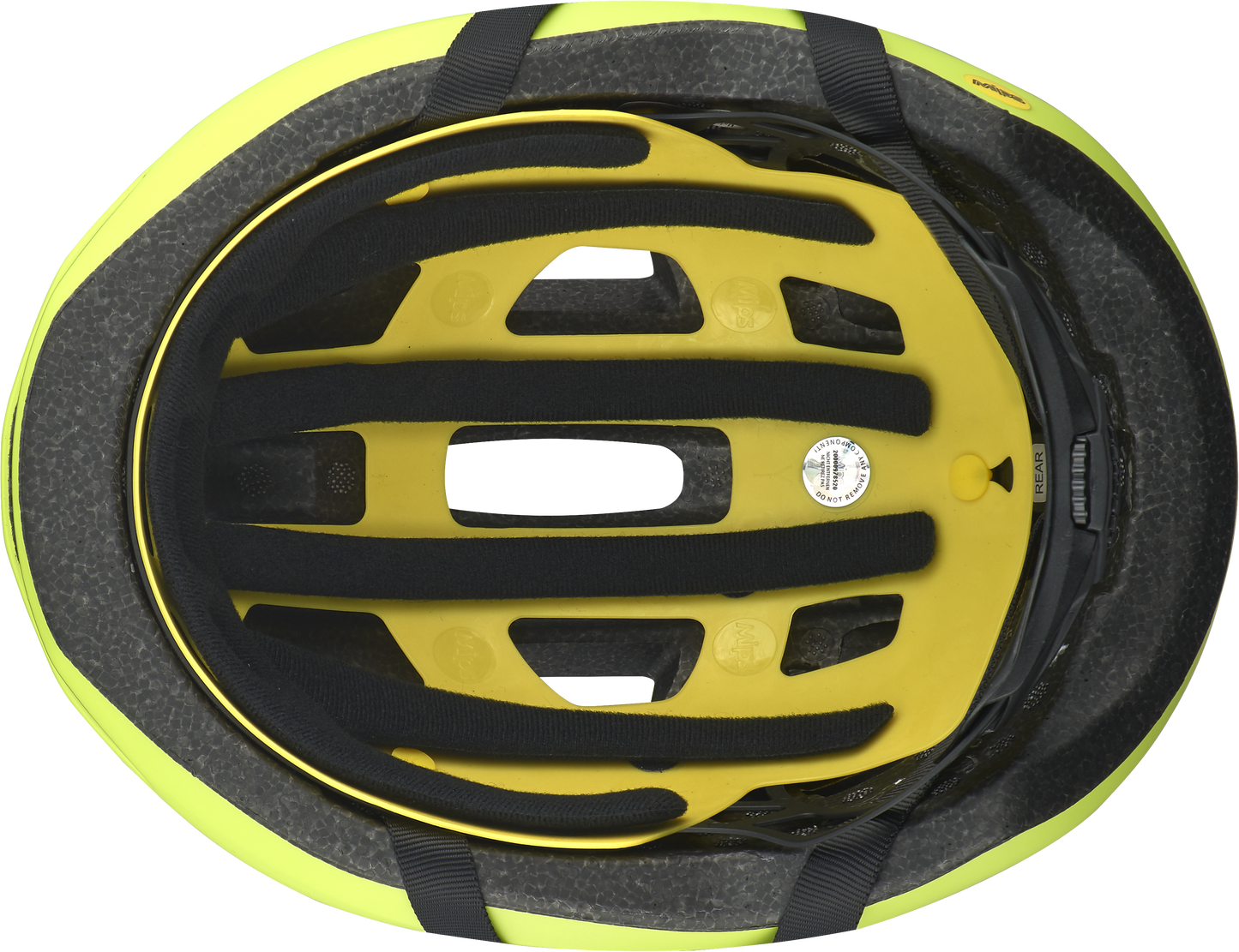 The MIPS system is a low-friction layer that allows a sliding motion of 10 to 15mm in all directions. Studies indicate that this reduces some of the rotational forces transmitted to the brain during angled impacts.