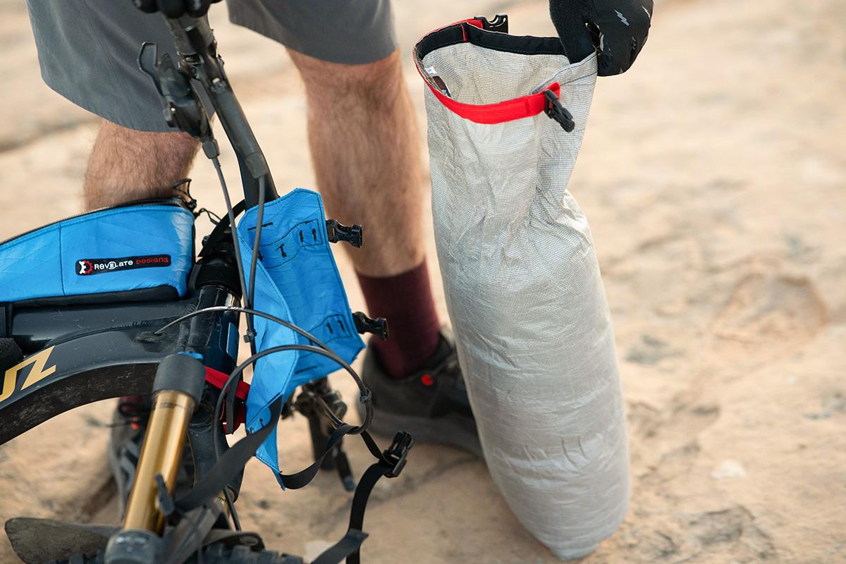 Personally tested and refined by Revelate designer Dustin Eroh on the Colorado Trail Race, Kenai 250, and many more — the Pronghorn has garnered distinction from the racing community for its stable and simple functionality since its initial release in 2018. A key to the system's performance is a strategically placed internal fiberglass stay that is integrated into both the mounting points and front drybag attachment straps. This keeps your load from shifting while navigating technical singletrack.