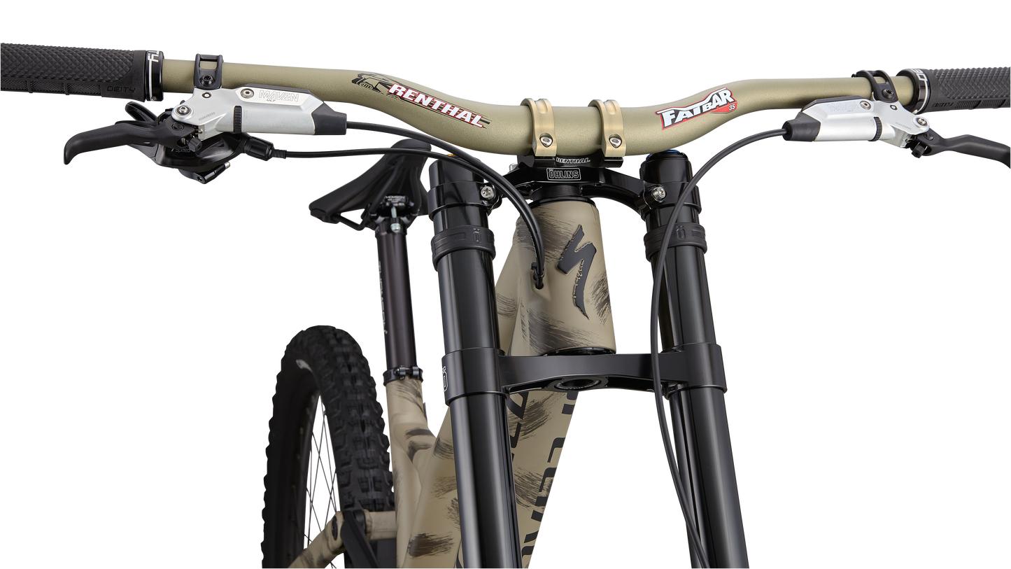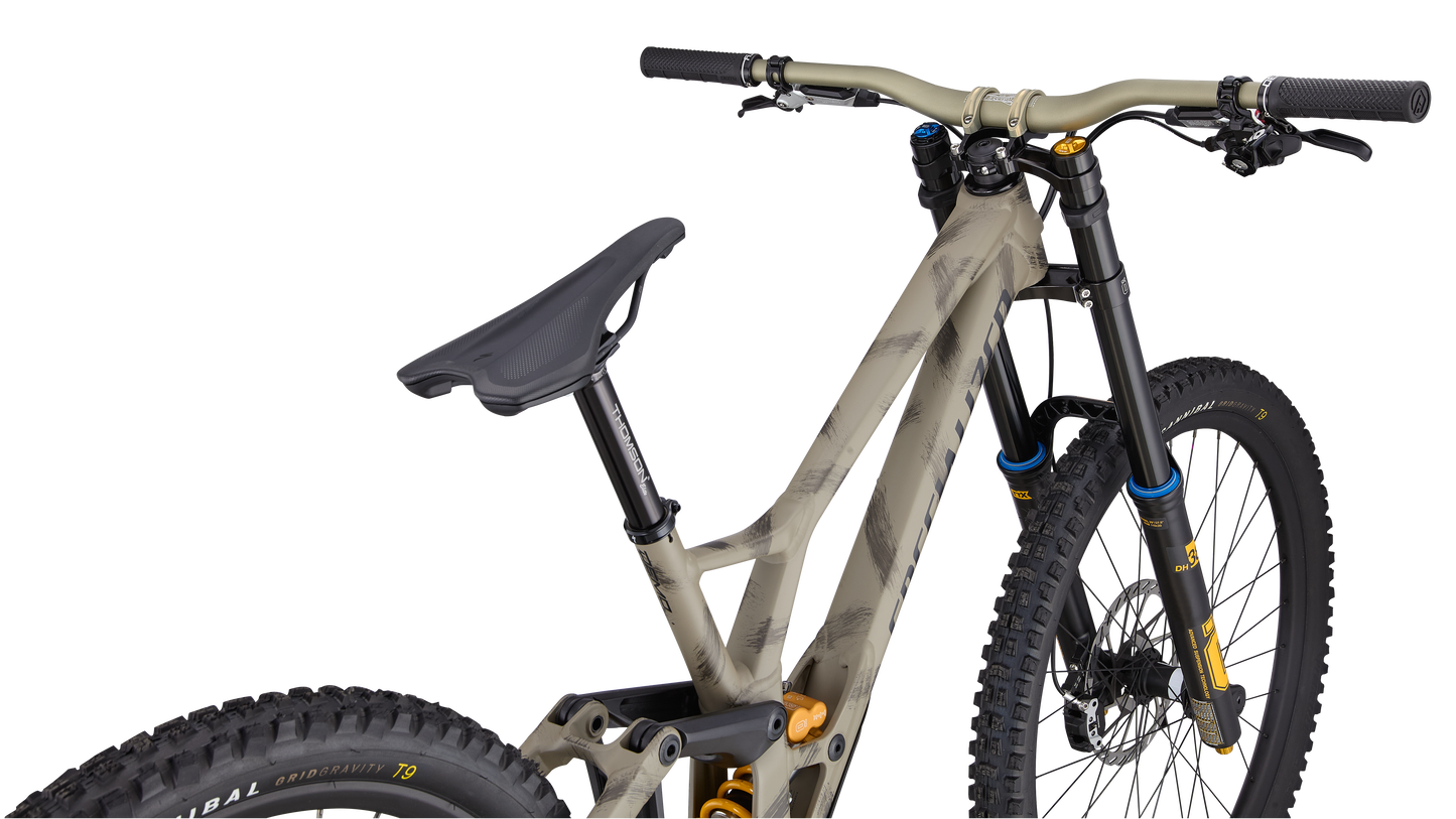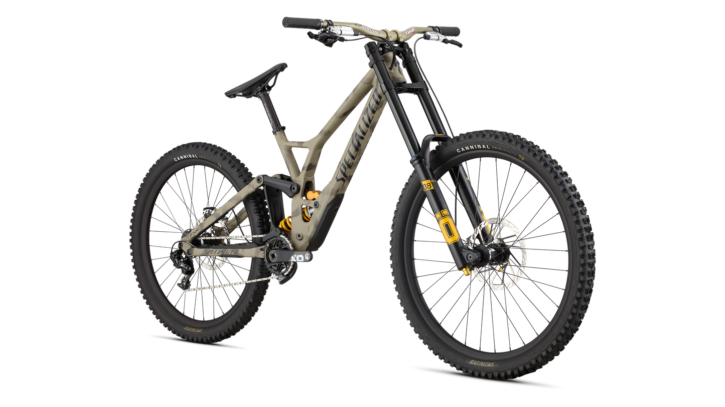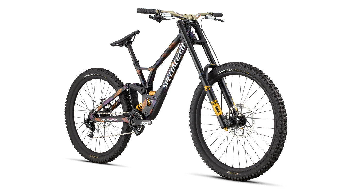 All-out speed has always been the Demo’s target, and with the Demo Race, it’s no different. Introducing a new flexible wheel-size frame design that allows riders to take advantage of a 29-inch front wheel and a 27.5-inch rear wheel, it’s a special blend that’s long been tested by World Champ Loïc Bruni looking for the perfect balance of traction and maneuverability, but only just green-lighted by the UCI this past year. Not that it stopped the Demo Race from racking up both the Downhill World Championship and overall World Cup titles in its very first season... Now; we’re offering that same winning combination straight out of the box, while an adjustable rear end that still allows you to change between 27.5 and 29-inch wheel sizes based on terrain and riding style while also adjusting for proper chainstay length and bottom bracket height. Blazing fast on tough tracks, the Demo Race suspension design has been developed around a more rearward axle path that reduces rear-wheel hang-up, increasing speed instead. Top-shelf suspension from Öhlins takes advantage of the most proven suspension kinematics on the World Cup circuit, and SRAM’s DH-specific X01 drivetrain has you covered from the start gate to finish line. The Demo Race M5 alloy frame is fully optimized to take advantage of the traction benefits of a 29-inch front wheel and the increased manueverability of a 27.5-inch rear wheel while maintaiining the ability to change your rear wheel size to suit different terrain and riding styles with an adjustable rear end that ensures chainstay length and bottom-bracket height stay dialed no matter the hoop size.