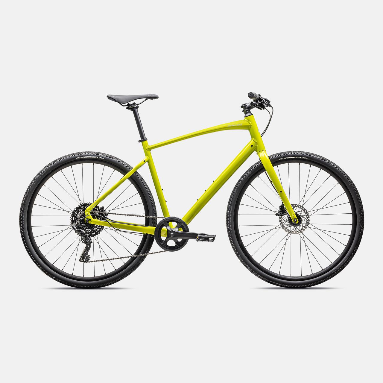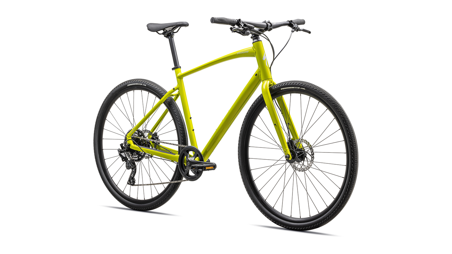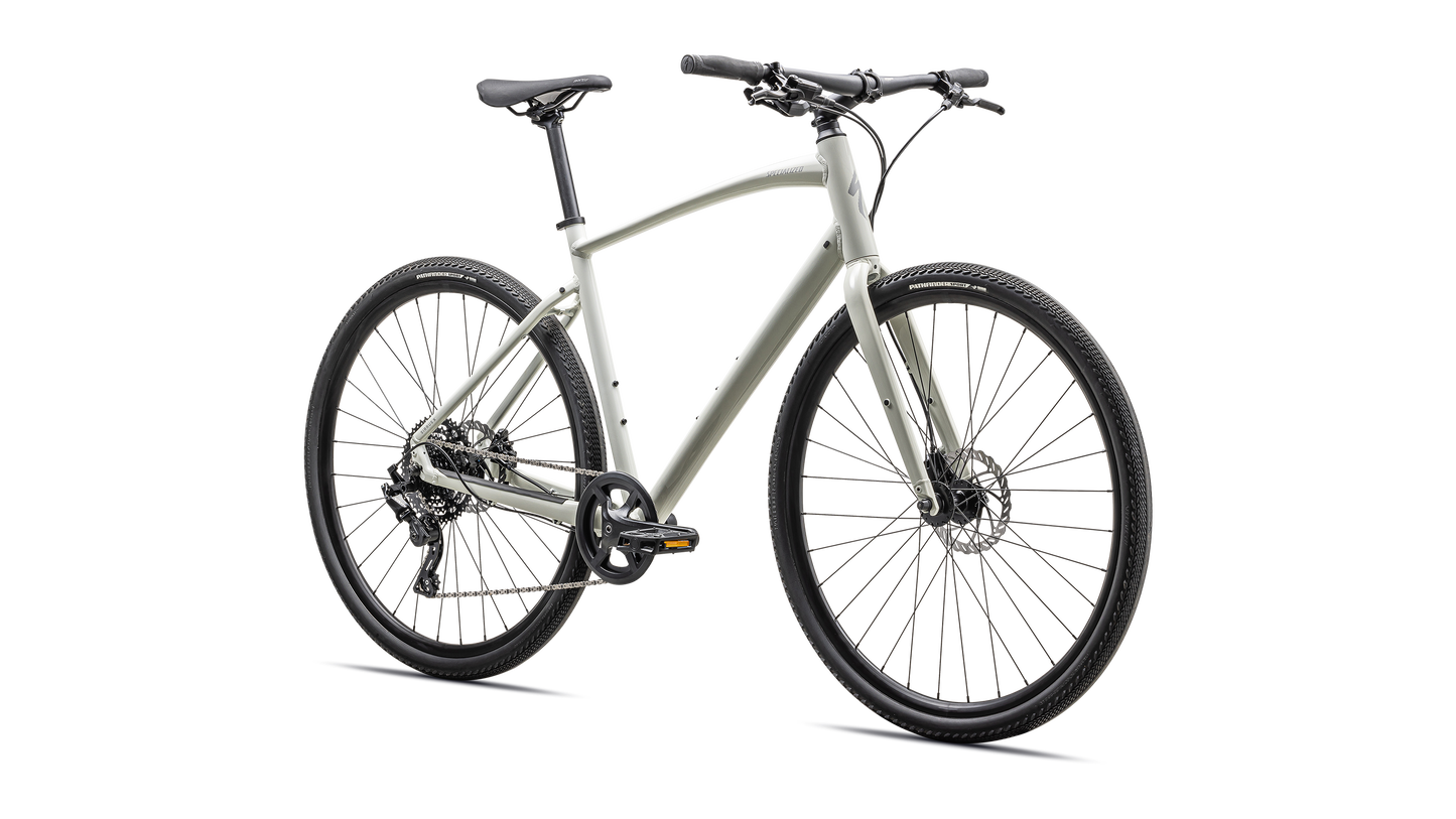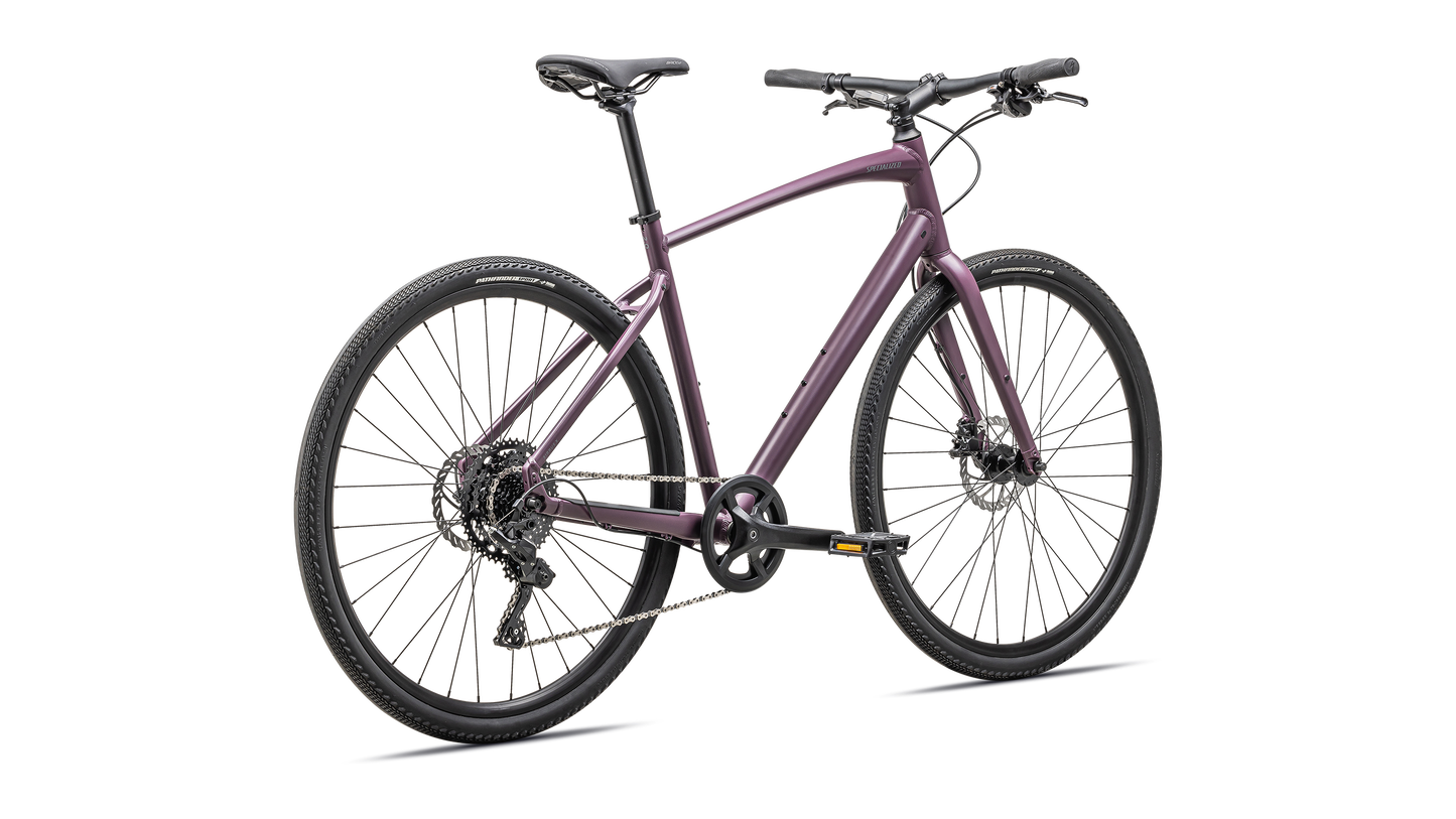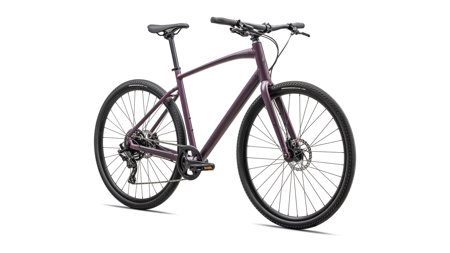 Specialized A1 Premium Aluminum, Fitness Geometry, butted tubing, internal cable routing, flat-mount disc, quick-release, Plug + Play rack/fender mounts