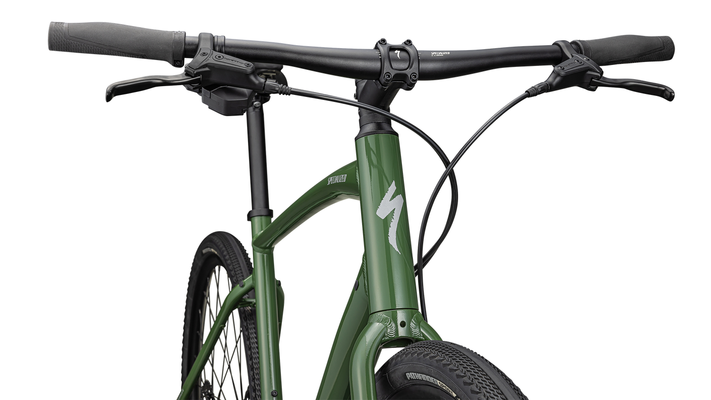 Specialized A1 Premium Aluminum, Fitness Geometry, butted tubing, internal cable routing, flat-mount disc, quick-release, Plug + Play rack/fender mounts