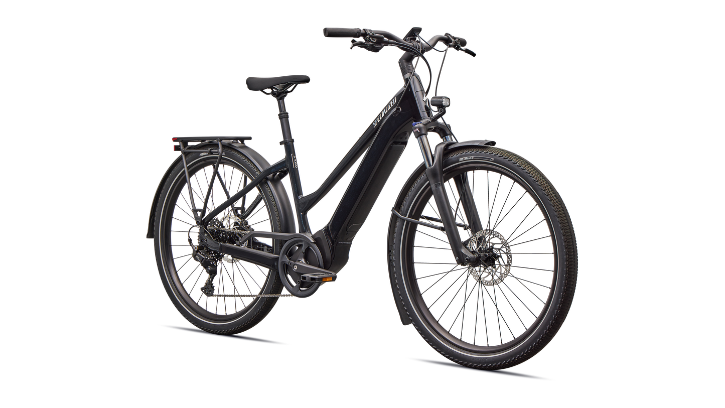 E5 Aluminum, mid-drive motor, fully integrated & lockable downtube battery, internal cable routing, wheel lock mount, and front rack compatible