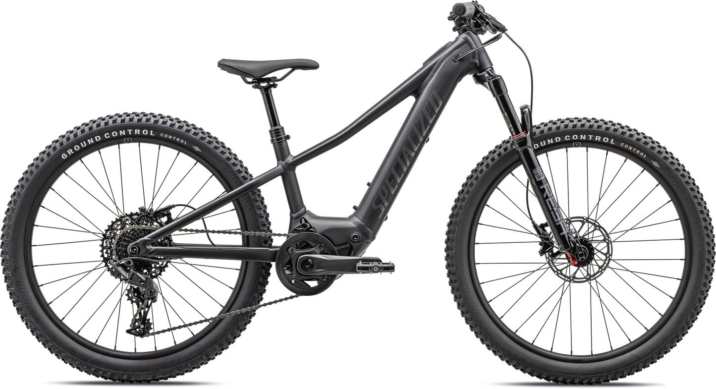 SRAM Level T Hydraulic Disk brakes with adjustable levers, 80mm dropper post to reach the ground easily and for descending with more confidence and 24” x 2.35” Ground Control tires for a plush feeling and lots of grip.
