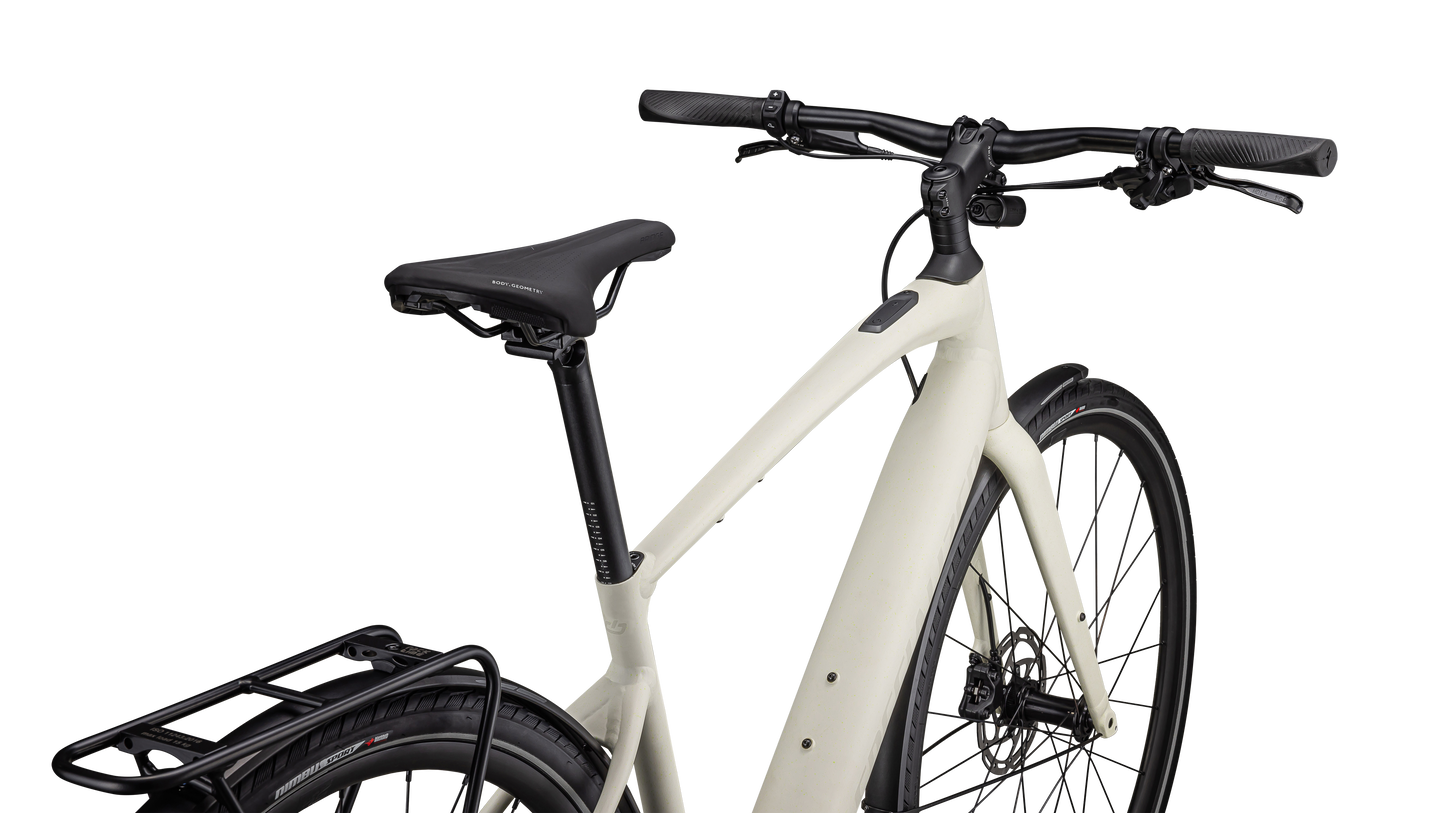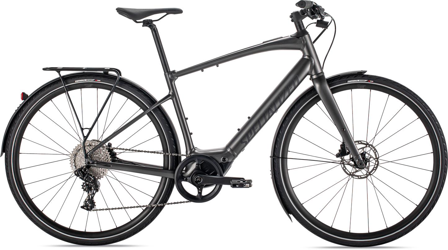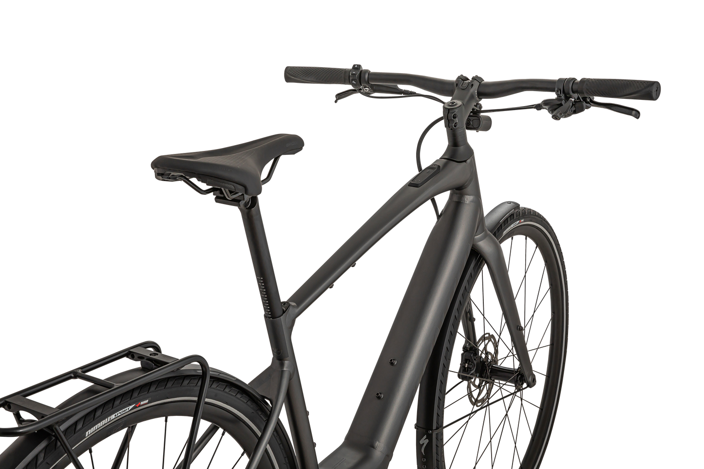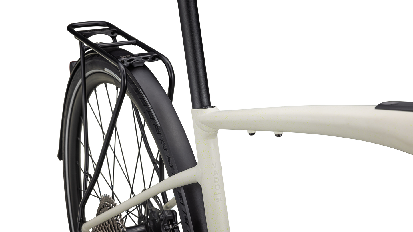 Turbo SL mounted rear rack, Racktime-compatible for your favorite bags and panniers, and DRYTECH fenders to keep the spray away.