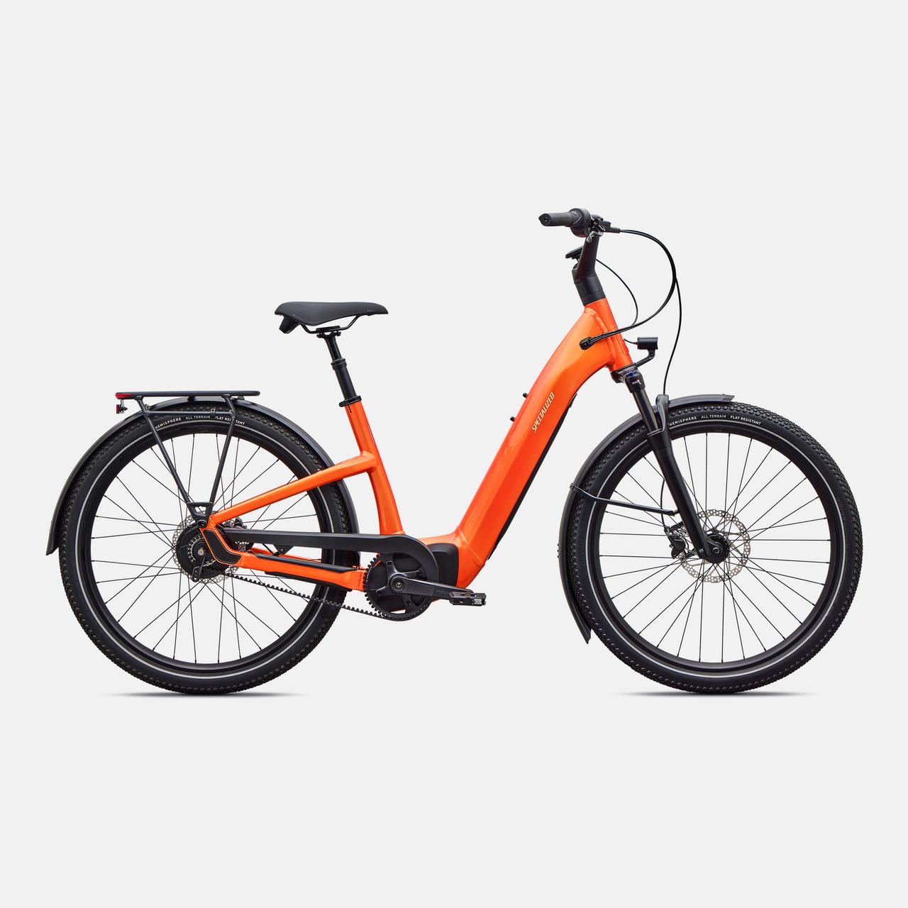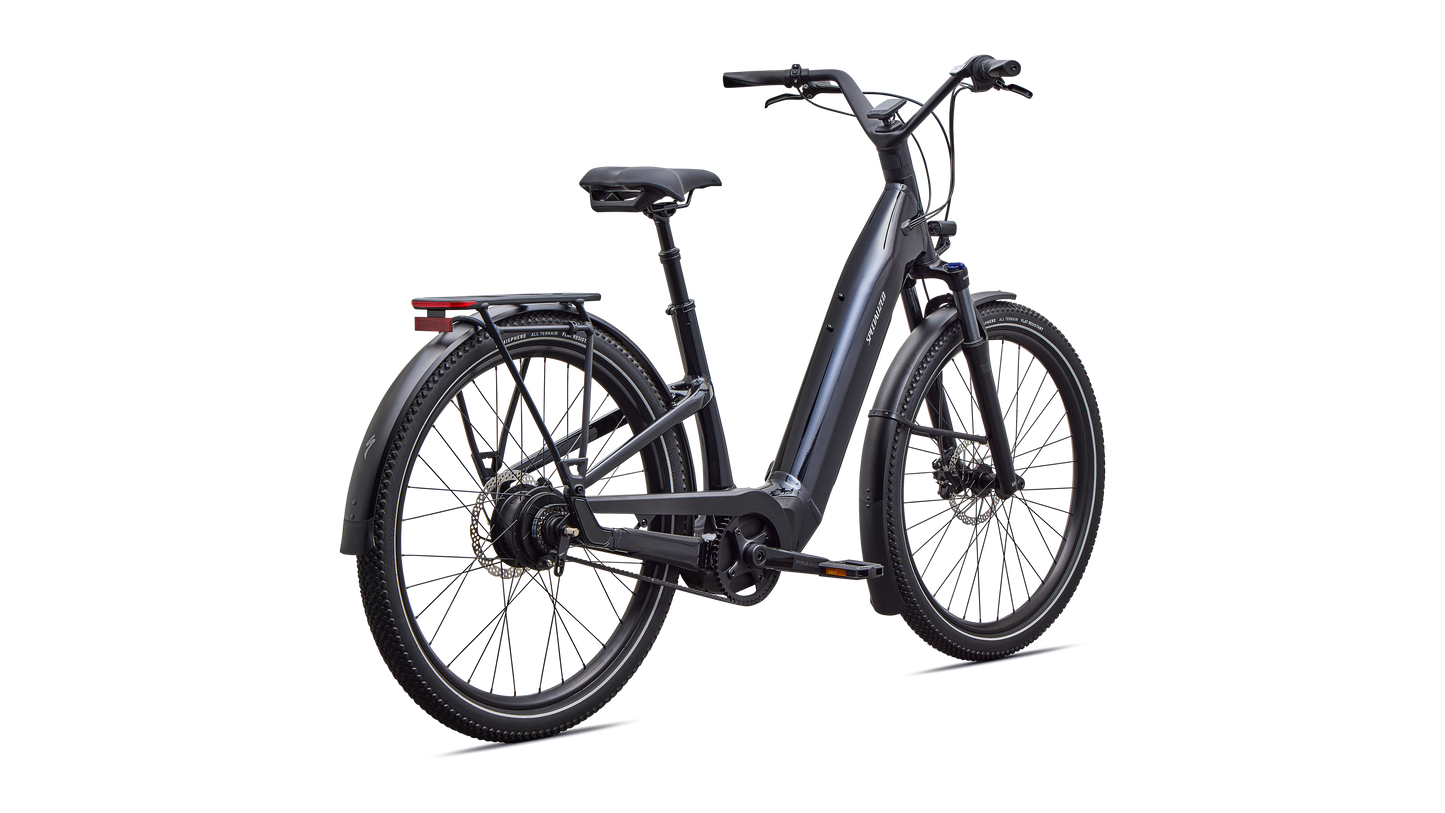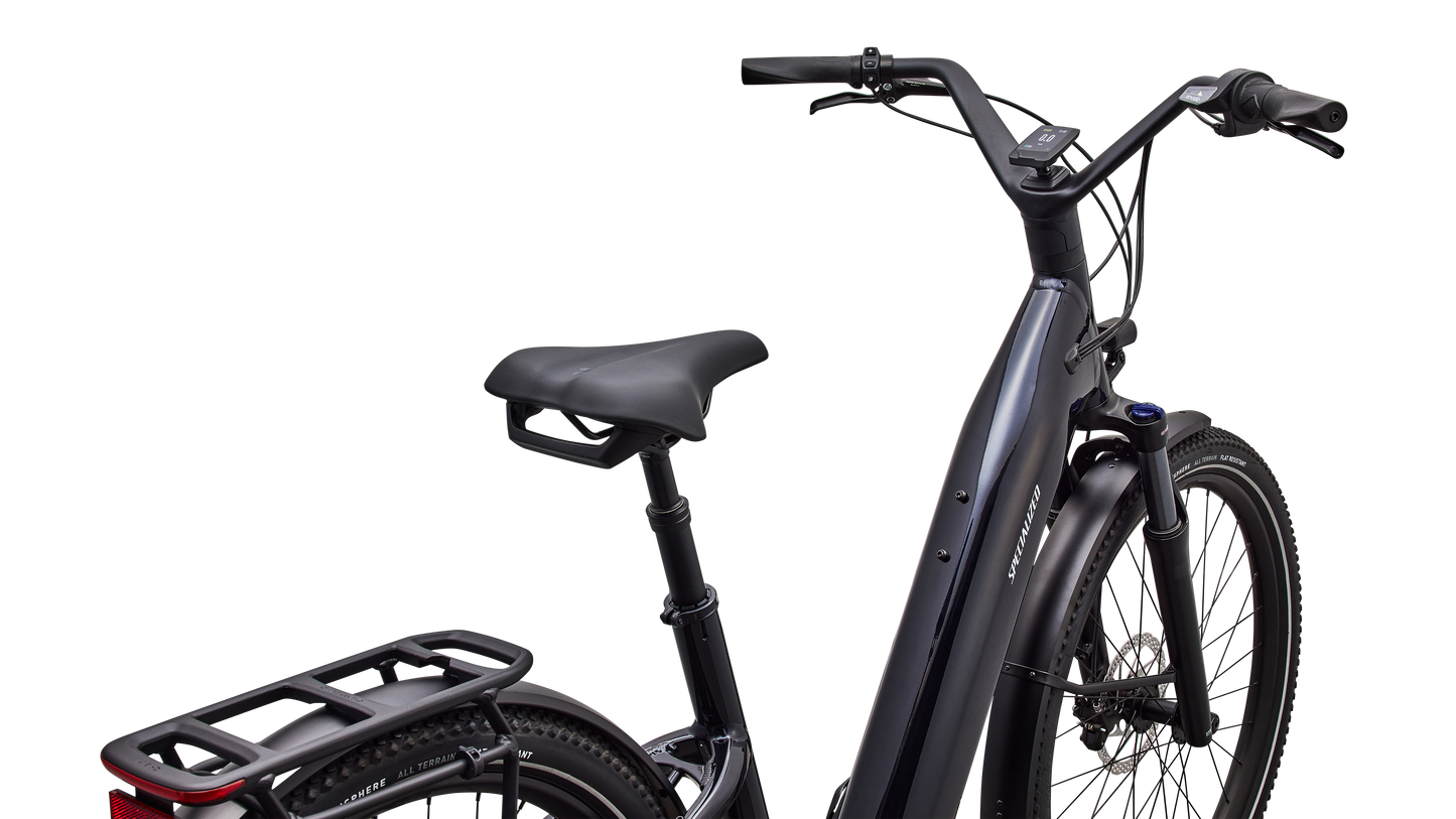 Como is a laid back e-bike with a clean look and upright rider position for convenient comfort and style. This full-power electric bike was designed for city streets and comes equipped with fenders, lights, and a low step-through frame, making it perfect for daily commutes or riding around town. Como offers the best combination of power, range, and usability while remaining incredibly versatile. You will never have to sacrifice comfort for style. You’ll find yourself making up errands to ride it again. COMFORTABLE: An upright body position and smooth handling are optimized for all-day riding comfort, confidence, and control. EASY TO USE: The Como's sleek design and step-through frame make the bike an approachable, functional everyday e-bike. POWERFUL: It’s you, only faster — it’s 4x You, to be precise. The Turbo Full Power system senses the force you apply to the pedals and naturally amplifies your effort by up to four times for an experience that makes getting up any hill or to any destination no sweat. Literally. SMOOTH: Stay comfortable in the saddle with an 80mm front suspension fork, higher volume tires, and a plush suspension seatpost that smooths harsh bumps. TURBO: The heart of the Como is its Turbo technology, the advanced and integrated electric bike system that delivers an unequaled combination of power, natural feel, anti-theft functions, training tips, and a full-function bike computer. SECURE: Como has anti-theft on lock. Thwart would-be bike thieves by disabling the motor with a press of a button so nobody can turn the motor back on without your personalized pin. For additional protection, the Como's battery locks in the bike, or can be easily taken with you. Beat it, bandits. SILENT: Turbo Full Power Motor provides smooth, quiet, and seamless amplification for a quiet ride on any terrain. The speed limit at which the motor will stop supporting may vary significantly by region and is based on local requirements. It may also affect range: a higher speed limit may result in less range. Turbo Full Power 2.0 motor and 710Wh battery offer an unparalleled riding experience, providing a smooth, seamless, and shockingly quiet amplification of your efforts, up to 28 mph. The integrated controller responds to your pedal inputs resulting in intuitive amplification of your efforts with an incredibly natural feel.