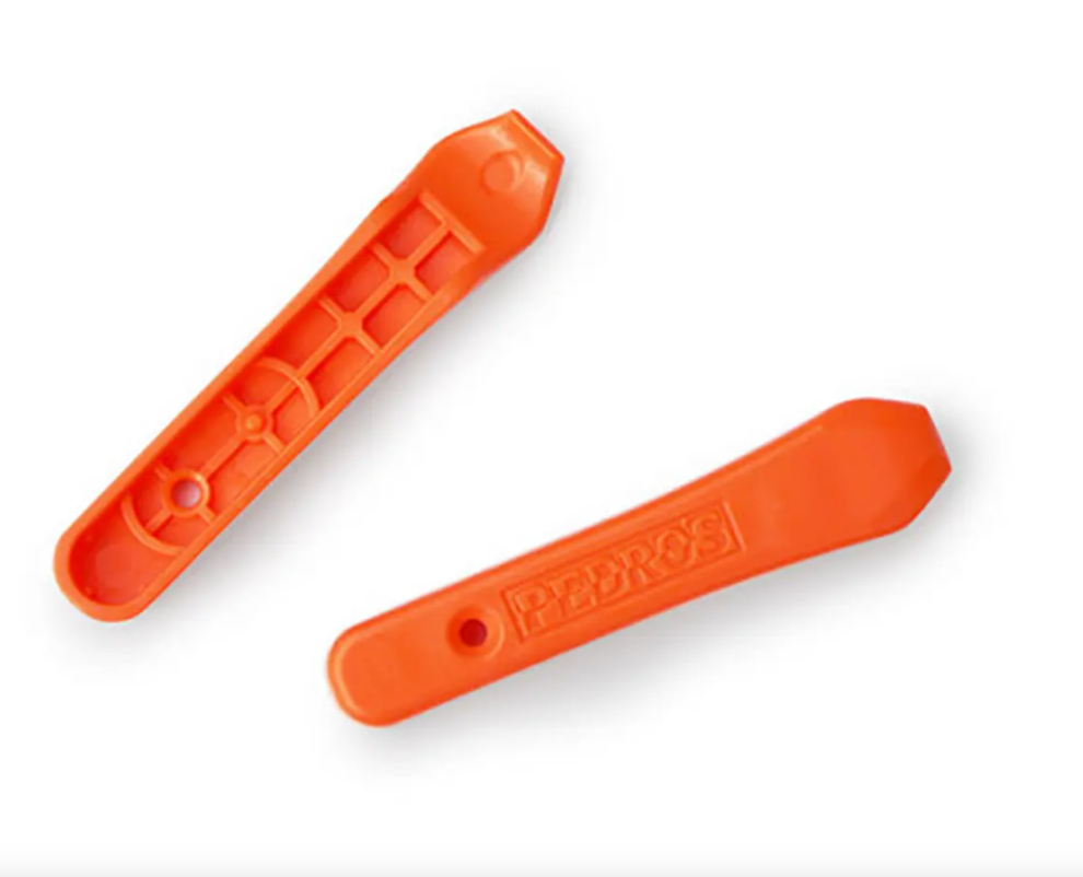 Removable plastic of great resistance, with a design that facilitates its handling. With an ergonomic shape and a tip specially designed for easy insertion between tyre and rim, they are small and, in addition to including a shell extractor, they have space to store the Shimano or Campagnolo pin and the quick chain hitch. Weighs 20 grams.