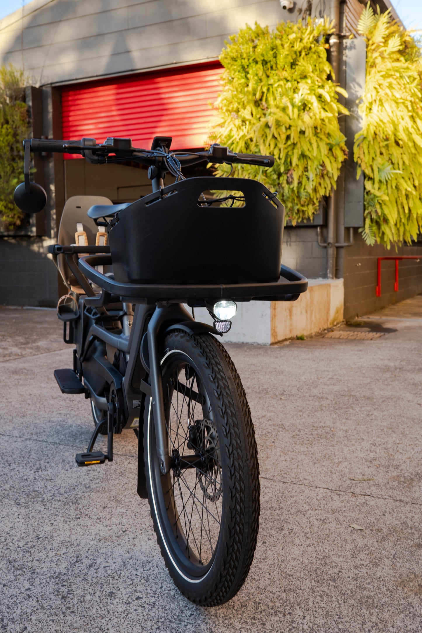 The all-new Turbo Porto is more than the most useful and powerful long tail cargo e-bike in it’s category. It’s meticulously crafted to be the highest performing, most refined, most beautiful way for you, your family, and your things to move … because what you ride means something. SUPERNATURAL AMPLIFICATION - Ride like a pro, everywhere you go. With 90 Nm of torque and a 710 watt battery, no electric bike in its category has more power. That means you can easily cruise and stay there as long as it takes. Doesn’t matter if your kids' school is the top of Alpe d’Huez; all that power combined with the legendary smooth delivery from the Turbo e-bike system means you can load them up and effortlessly climb. PURPOSEFUL PERFORMANCE - Nimble on any road, with any load. Porto inspires confidence in the rider from day one. Low standover means starting, stopping, and hopping on and off the bike, even when loaded, is a breeze, just like the ride. It may be long, and often loaded down with people and gear, but it rides just like a normal bike (or better). By implementing a long tail for cargo, rather than a large front load basket, you can park it like a normal bike too. We believe Porto brings the safest and most stable ride, regardless of load (up to 200kg! - includes weight of bike and rider) on the market to riders at any skill level. And like any premium transportation, Porto seamlessly adjusts to you, so riders from 155cm to 195cm get the same confident, comfortable ride. FAMILY-FIRST FUNCTION - We thought of everything, so you can do anything. Porto is no stripped down cargo hauler… It comes loaded with an included front rack and long tail rear rack, ready for child seats, passenger seats, panniers, and countless other accessories. It’s built with your family in mind, designed for a stable and nimble ride when you’re carrying what’s most precious, without sacrificing an ounce of style. Every cargo e-bike can carry people, but Porto is built to carry people. When it’s your family on the back, the difference matters. 90Nm of Torque.