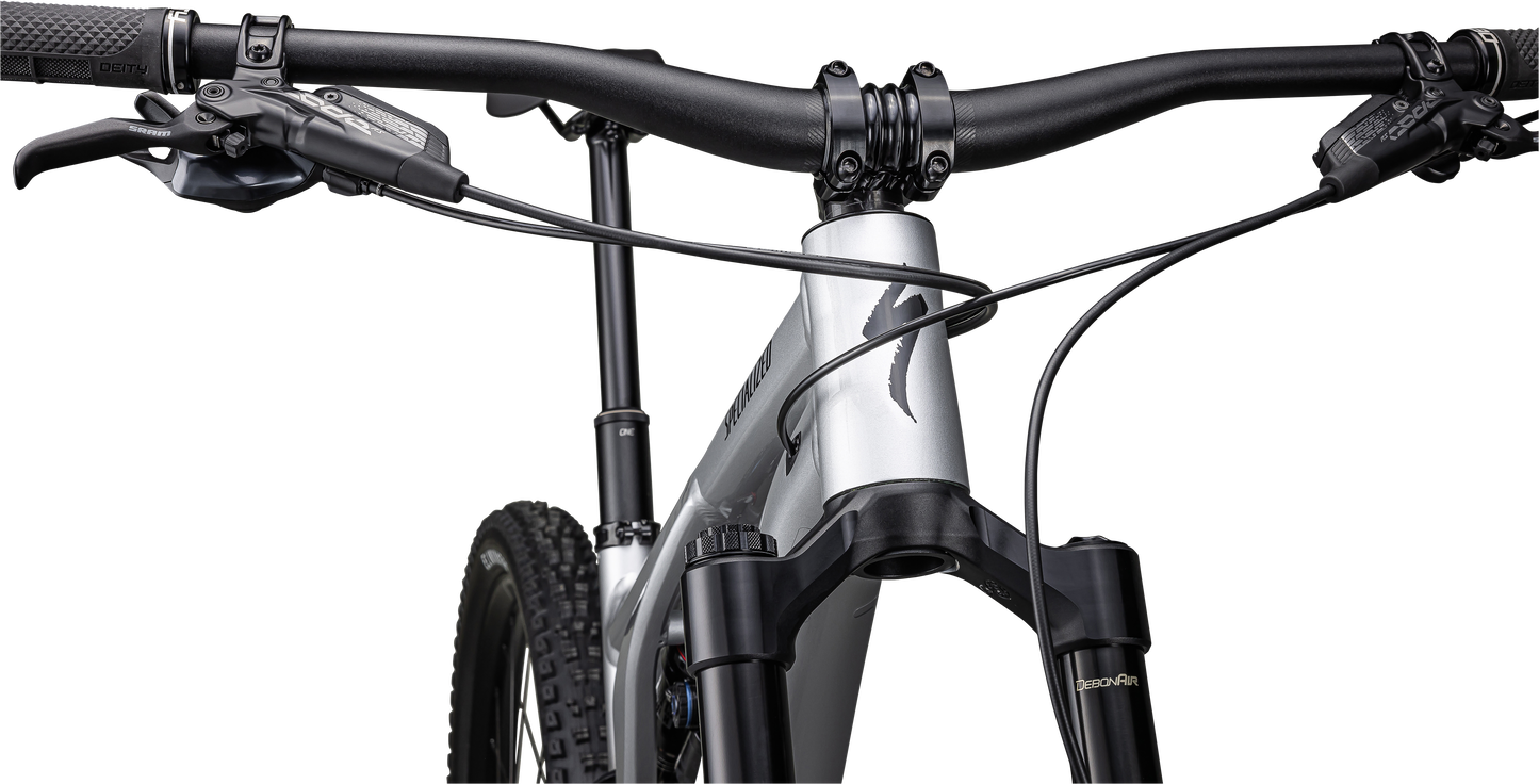 M5 Alloy chassis and rear-end, asymmetrical design, 29/27.5" Trail Geometry with S-Sizing, SWAT™ Door integration, head tube angle adjustment, horst pivot BB adjustment, threaded BB, fully enclosed internal cable routing, 12x148mm dropouts, sealed cartridge bearing pivots, replaceable derailleur hanger, 150mm of trave