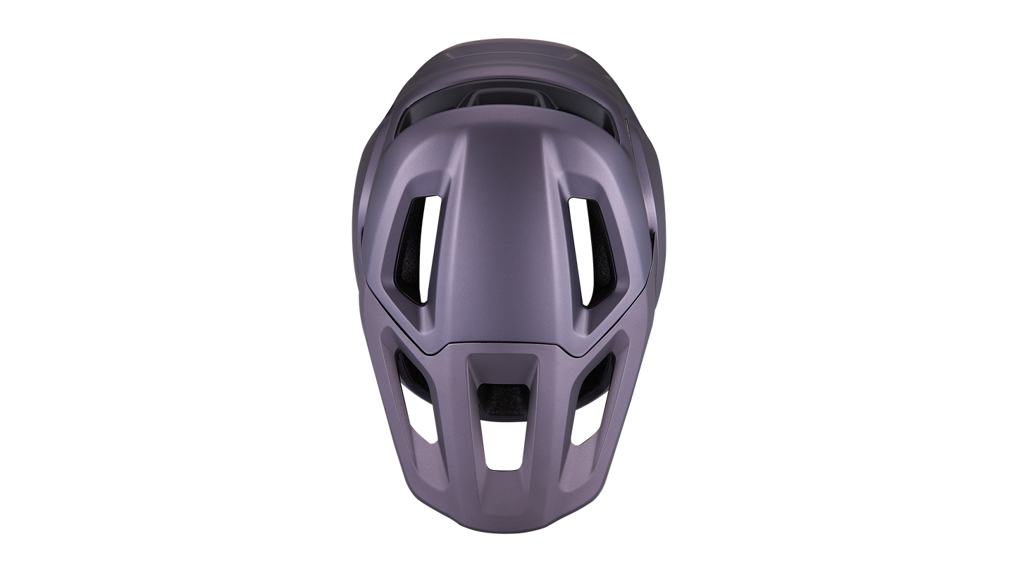 Integrated fixed visor with a breakaway feature provides increased trail vision and a seamless interface with eyewear while effectively channeling airflow through the helmet for superb ventilation.
