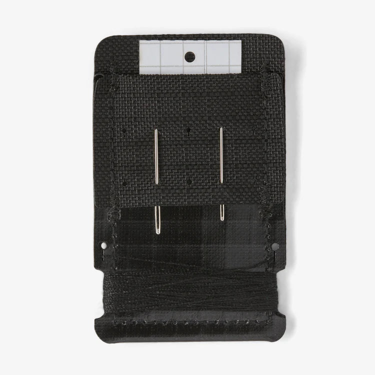 Slim, credit card-sized holder tucks into a pocket or a wallet to keep repair supplies close at hand